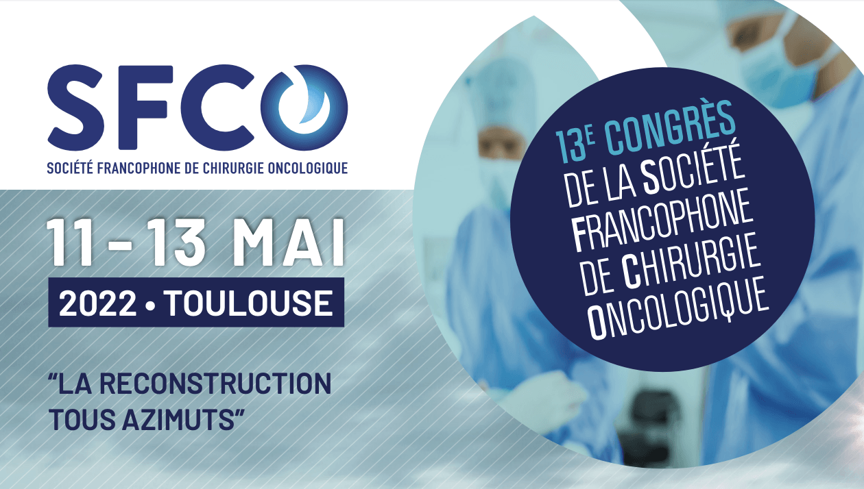 Nous sommes très heureux de vous annoncer que le 13e Congrès de la Société Francophone de Chirurgie Oncologique “La reconstruction tous azimuts” , aura lieu les 11, 12 et 13 mai 2022 à IUCT Oncopole de Toulouse . Des dizaines d’orateurs nationaux et internationaux échangeront sur l’actualité en cancérologie dans les domaines aussi variés que la sénologie, la gynécologie, les sarcomes, le digestif, l’ORL ou l’urologie. Bloquez les dates dès maintenant ! Présidents du congrès, Pr Jean-Marc Classe & Dr Gwenaël Ferron